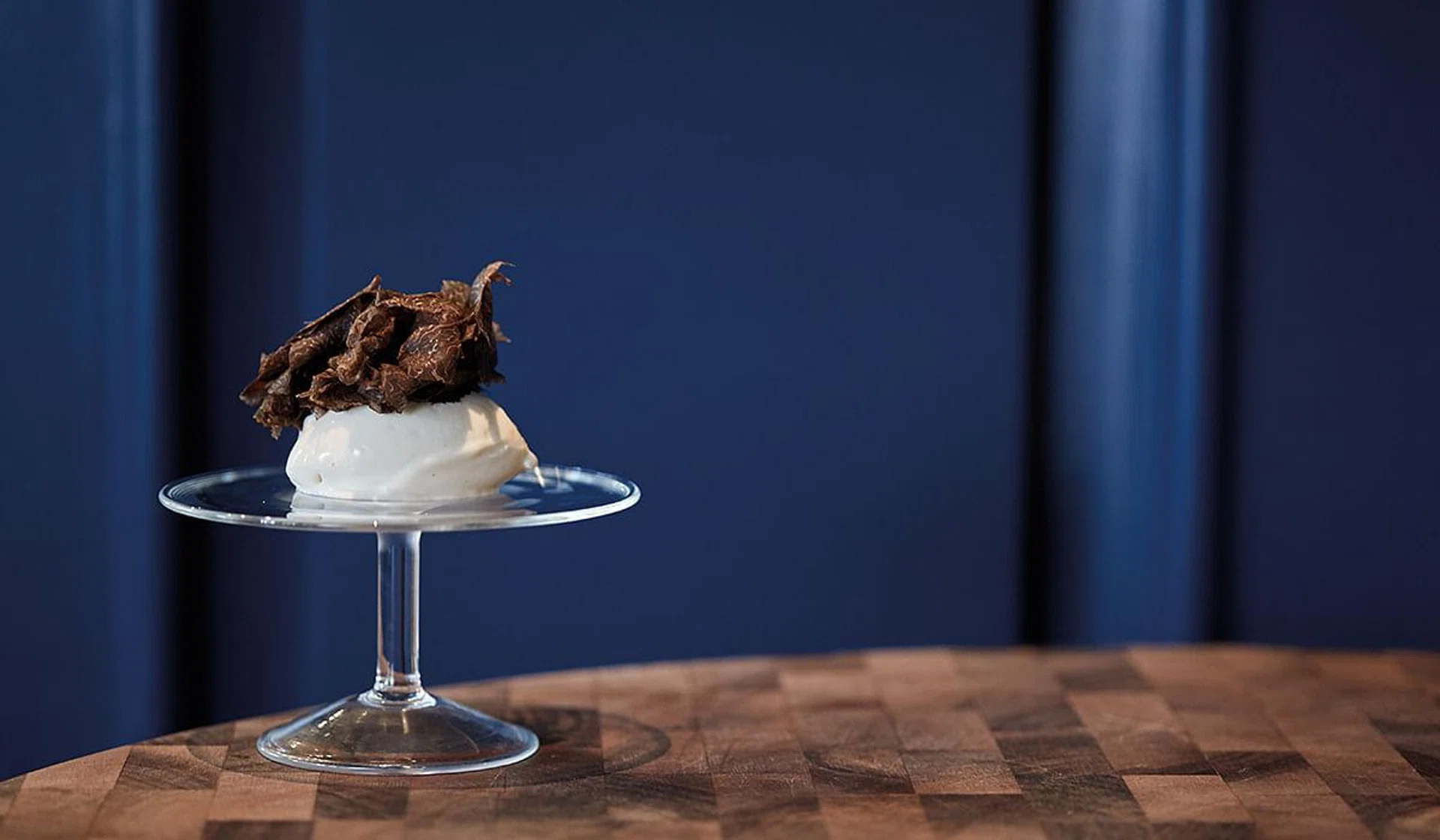 To provide a consummate experience at grilled meat specialty restaurant Butcher’s Block, chef Remy Lefebvre has incorporated a variety of wood-fire cooking techniques to create the flavours for his ice creams. An earthy, roasted Jerusalem artichoke ice cream topped with black truffle shavings sees the root vegetable imbued with a robust toastiness over the grill before being made into ice cream; a touch of white chocolate is added to provide a sweet and milky richness. For his smoked hay ice cream, Lefebvre smokes French hay and leaves it in milk for two hours before turning it into ice cream. Gluten-free and vegan diners can opt for an almond milk version.