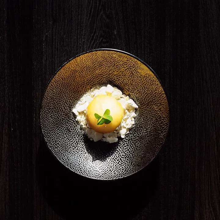 Returning favourites include bright green mushroom ball with spinach puree. The ball, which is encased in Vietnamese rice paper, contains several types of fungi such as abalone mushrooms and matsutake mushrooms.