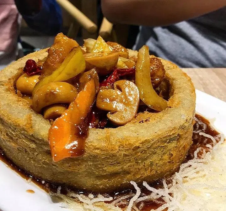 The five-course set ($49.90++) includes the highlight hot pot with a choice of soup base, as well as an assorted vegetable platter. A special cordyceps menu ($88++) includes Nagqu cordyceps double-boiled soup and noodles with Chinese truffle and cordyceps. The dishes are also on the a la carte menu, along with other highlights such as fried spinach pancake ($12) and dry tossed cordyceps flower ($12) with carrot, radish and enoki mushrooms.