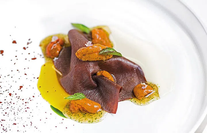 DISH TO DIE FOR Two years in the making, uni pasta with chocolate and sauce vierge is a must-try.