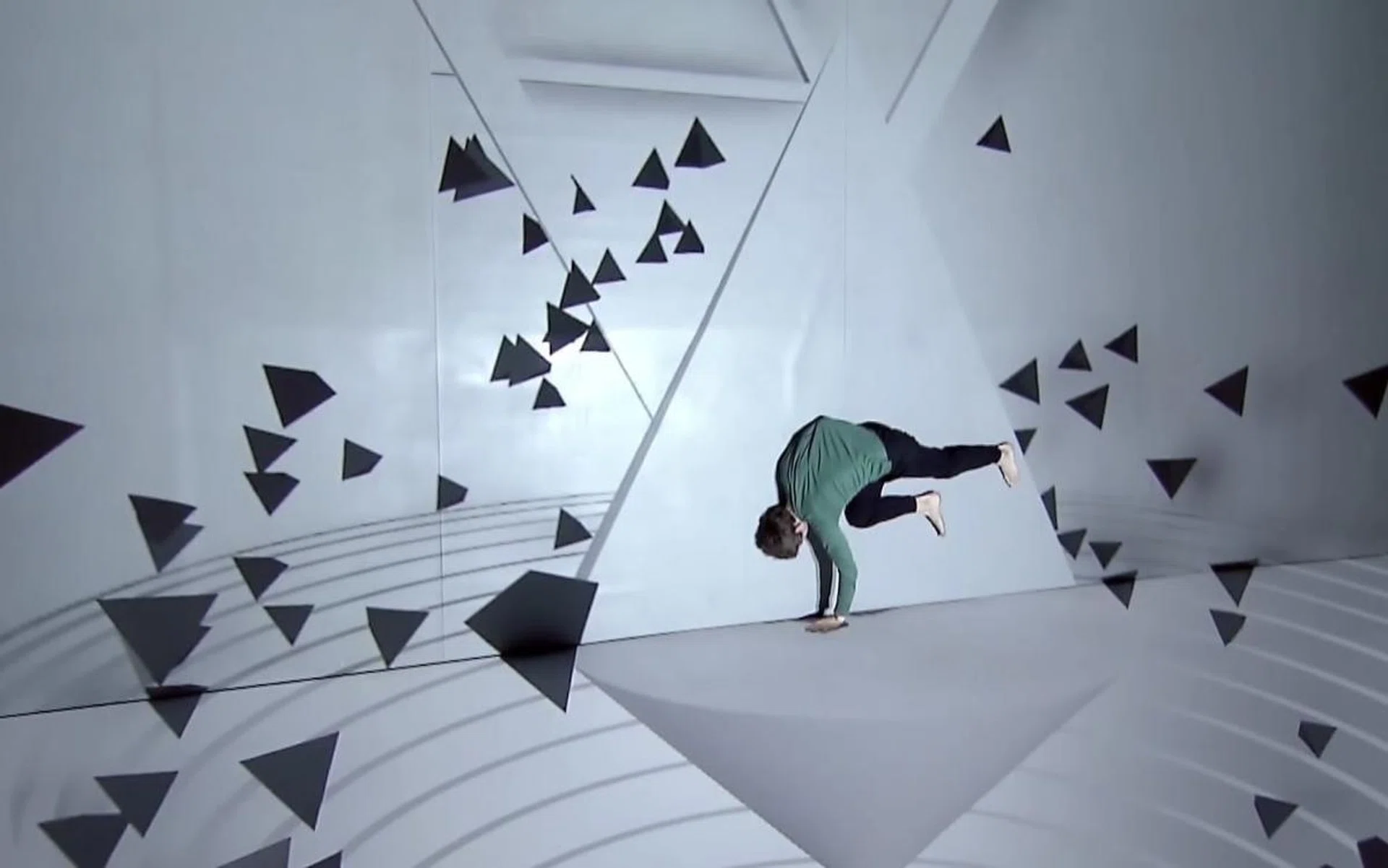 'Levitation' is a collaborative performance by Sila Sveta and Anna Abalikhina. The performance was broadcast on the reality competition TV show 'Bolshoi Ballet' or 'Big Ballet' - not to be confused with the British television documentary of the same name. No post production effects were used - it's purely the concept and perspective at work.