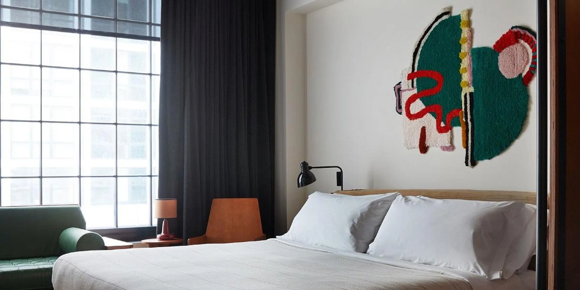 The boundaries between art galleries and hotels are becoming increasingly blurred as hotel groups surround themselves with art consultants and exhibition curators to personalize their properties. The owners of the Wythe signed up Kimia Kline to curate the art programming at this luxury establishment, located in the trendy Brooklyn neighborhood of Williamsburg. She compiled a collection of sketches and works on paper by contemporary artists from the Big Apple, including Katherine Bradford, EJ Hauser, Russell Tyler and Annette Wehrhahn.