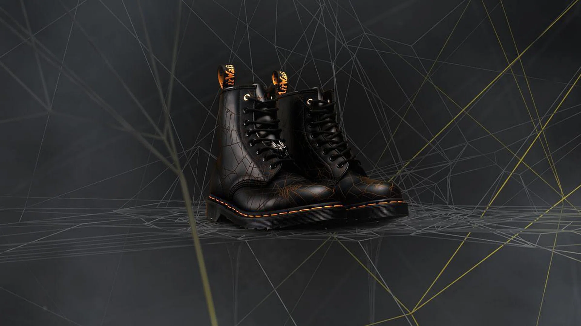 Renowned for his unconventional and unfussy style, his timeless love for black and his ability to do away with boundaries between genres, Yohji Yamamoto has come up with an anniversary model that is more rebellious than ever. The "1460 YY Web," which is made from Smooth Splice leather, is decorated with a laser-engraved motif of a spider's web. The designer's signature is also inscribed on the tongue, which is black like the rest of the shoe, and in marked contrast to the brand's signature yellow stitching and gold eyelets. In a final detail, a silver-coloured metal spider can be seen creeping over the laces.