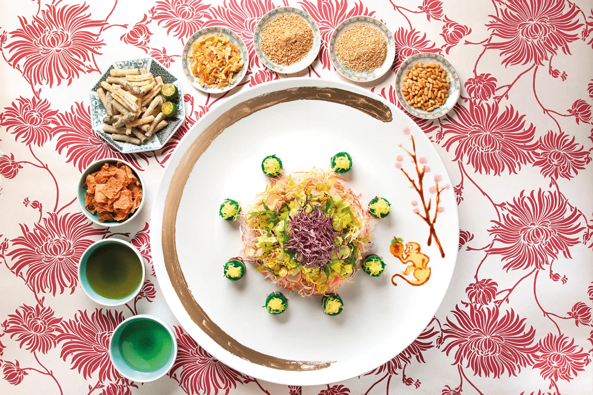 2) Chilled Sea Whelk and Salmon Caviar Yu Sheng, Summer Pavillion