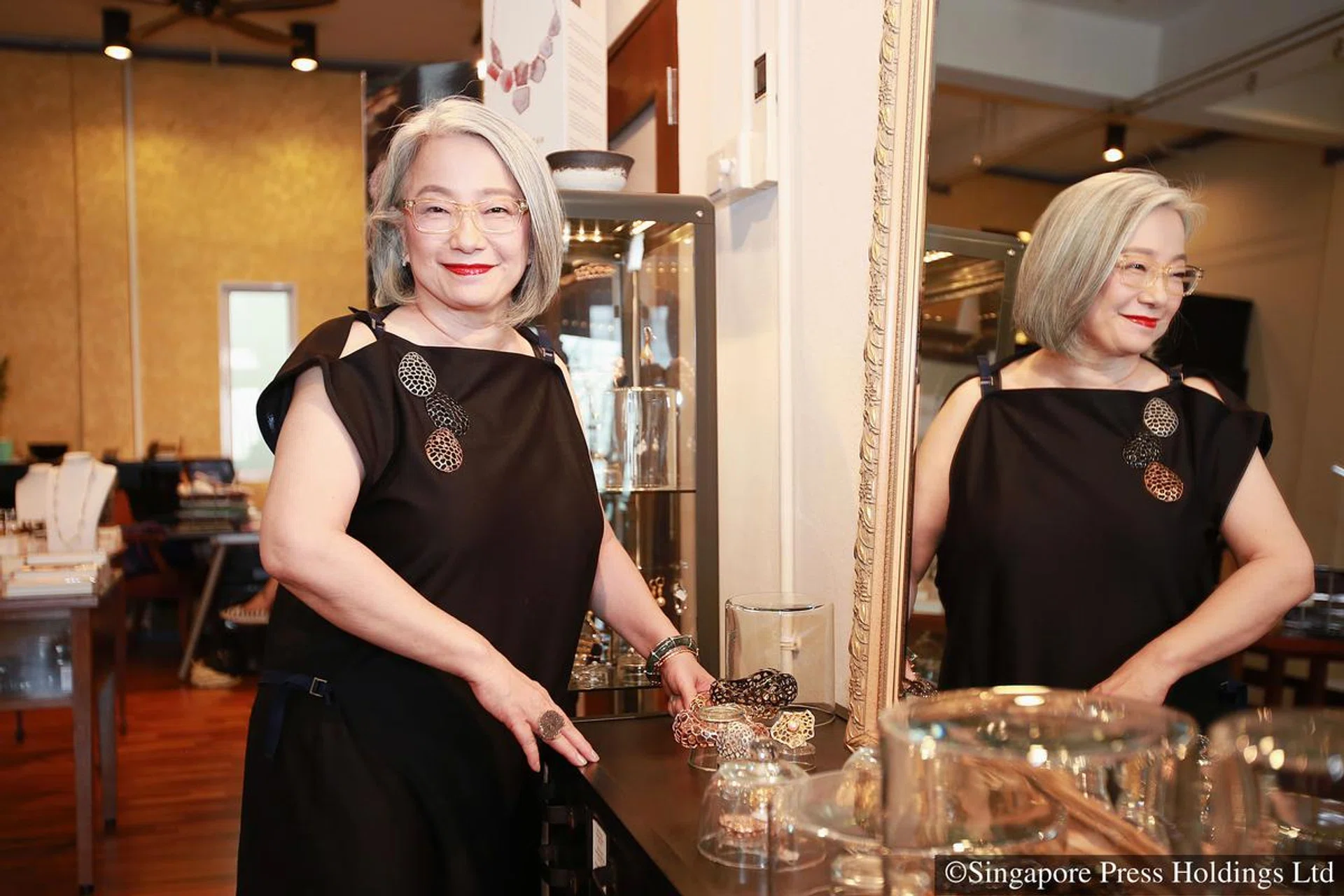 In 1989, she signed up for a part-time jewellery design course at Lasalle College of the Arts, which taught her not only the basics of design but also the language of the business. Though she started out just designing beaded pieces for her friends, things changed when her friend, Ms Judith Chung – then owner of designer multi-label fashion boutique, A Man and His Woman, which was well known in the 1980s and 1990s – asked her to create 10 pairs of earrings for a fashion show she was staging.