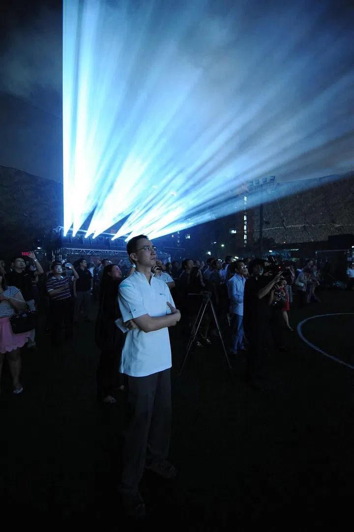 “The organisers came up with an idea which no one knew would work or not. Nobody in the world has done a tracking scale like this,” he says. He explains the technicalities involved. “The camera registers infra-red beacons installed on an object, and as it moves, the camera will detect the shift and instruct the projector to cast images on the new location. On a small scale, this is very easy to do, but on a cluster of 99, 3D objects totalling 20m tall and 60m in diameter like Sky City, we didn’t know if the tracking would work.”