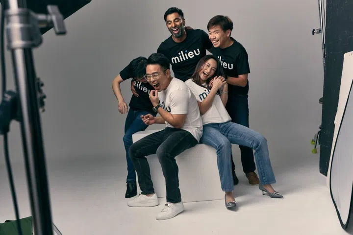Sundip Chahal with Milieu Insight leadership; CTO Feng Yi Chan, COO Gerald Ang, CFO Kelvin Li, and CCO Juda Kanaprach.