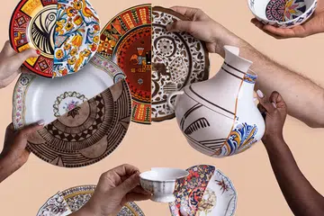 This tableware collection combines two different designs in one piece