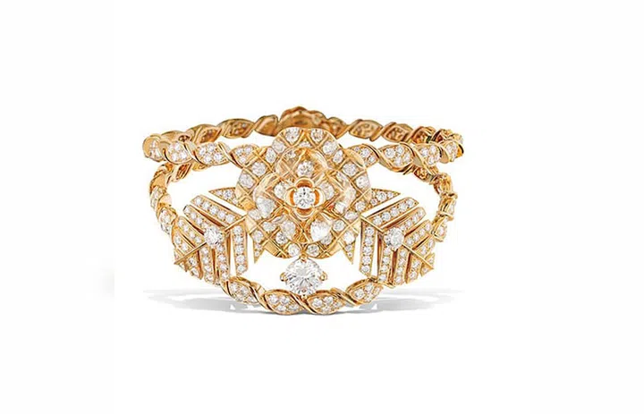 Chanel Escale à Venise gold, rock crystal and diamond Camelia Venitien cuff.