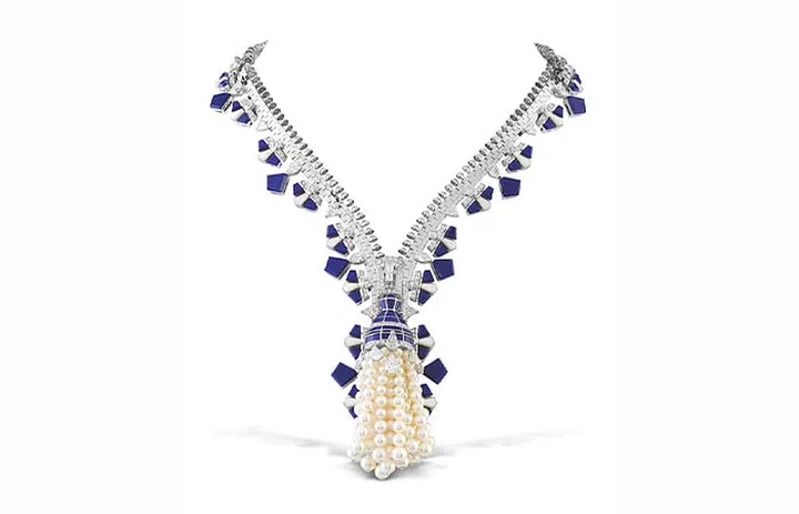 With its ability to open and close just like the humble everyday item from which it gets its name, transforming from a statement necklace to an equally stunning bracelet, Van Cleef & Arpels’s Zip necklace has been a legend in the jewellery world since its first appearance in 1950. Here, angular lines decked with lapis lazuli, mother-of-pearl and diamonds are juxtaposed with gleaming orbs of cultured pearls, resulting in looks that are sure to turn heads every time.