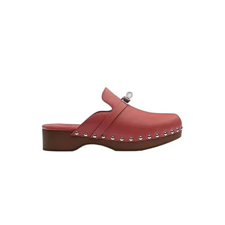 This supple leather clog is embellished with a palladium-plated Kelly buckle, the very same one you’d find on the famous Hermes Kelly bag.