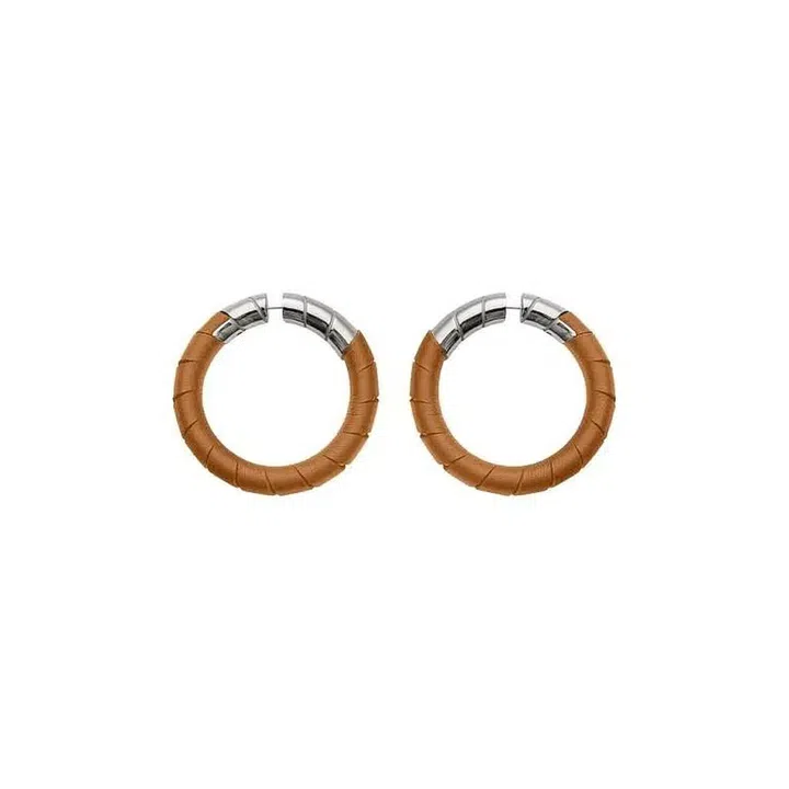 This pair of silver hoops wrapped in a tanned calfskin leather harks back to the brand’s expertise in all things leather.