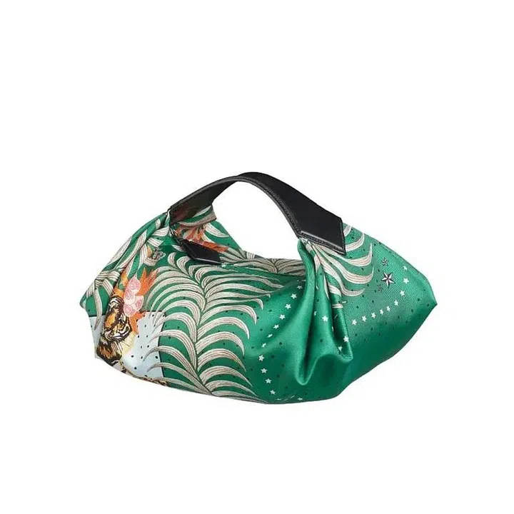 Silk scarves, a signature house code of Hermes, have been incorporated into this hobo number. They have been given a special treatment to make them more durable, and the scarf comes attached with a calf leather handle, rendering it perfectly functional.