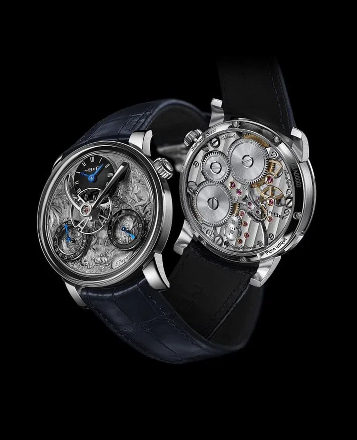 The MB&F Legacy Machine Split Escapement decorated by master engraver Eddy Jacquet (Photo: The Hour Glass)