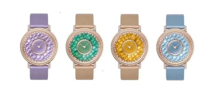 The gemstones are precision-carved and hand-polished into glowing cabochon petals, which are then tension-set onto dials. So vivid and magnificent the result is, that the brand’s floral-themed collections, the Dahlia, Lili and Lili Bouton, were put into contention for the prestigious annual Grand Prix de l’Horlogerie de Geneve (GPHG) awards in 2018, 2020 and 2023 respectively.