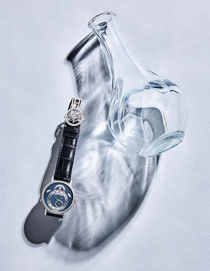Breguet is known for its hand-guilloche dials, which bear engravings executed using rose engine lathes dating back to the 18th century. It shows off this savoir-faire to stunning effect on creations such as the Classique 7337 calendar watch. The 39mm white-gold timepiece features a dial with a mix of guilloche motifs — grain d’orge on the rim, clous de Paris in the centre and damier checkerboard on the off-centre seconds subdial.