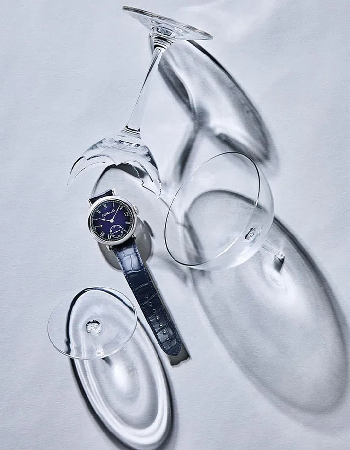 Powered by the HMC 800 manual-winding calibre, the H. Moser Heritage Perpetual Calendar Midnight Blue Enamel features an ingenious perpetual calendar indication. In this 42mm white gold watch, the hour indexes double as month indicators — when it’s December, for instance, the smallest central hand points at 12 o’clock. The date at 3’clock jumps instantly at midnight, and automatically takes into account the differing month lengths as well as leap years.