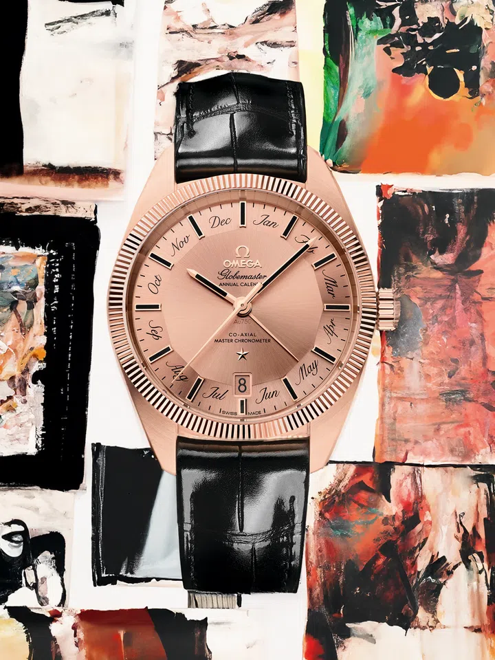 The Co-Axial Calibre 8923 drives this annual calendar, while the sapphire caseback reveals the Central Observatory medallion honouring Omega’s heritage of precision.