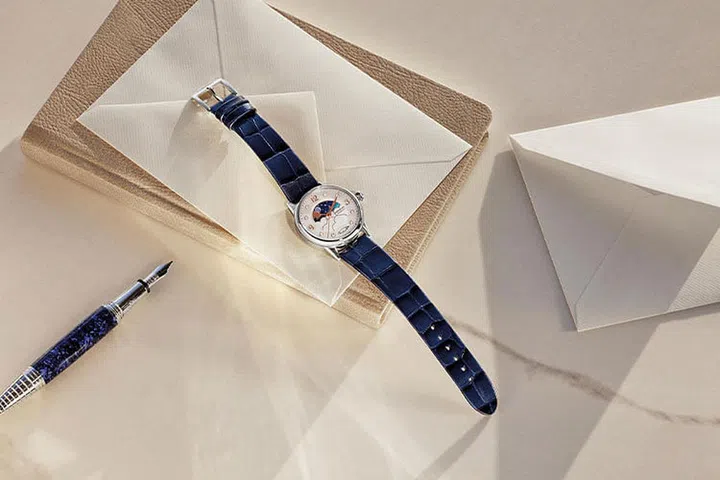 A new edition of Montblanc's Bohème, in 30mm and 34mm, brings out the day/night indicator in an unusual but romantic interpretation.