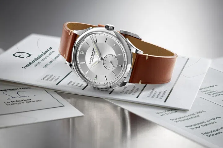 Embodying Chopard’s vision for responsible luxury, its silver-toned sector dial is inspired by the original 2005 model, and features contrasting finishes and syringe-style hands that exude understated sophistication. Paired with a vintage brown calfskin strap, it is a timeless accessory for contemporary tastemaker.