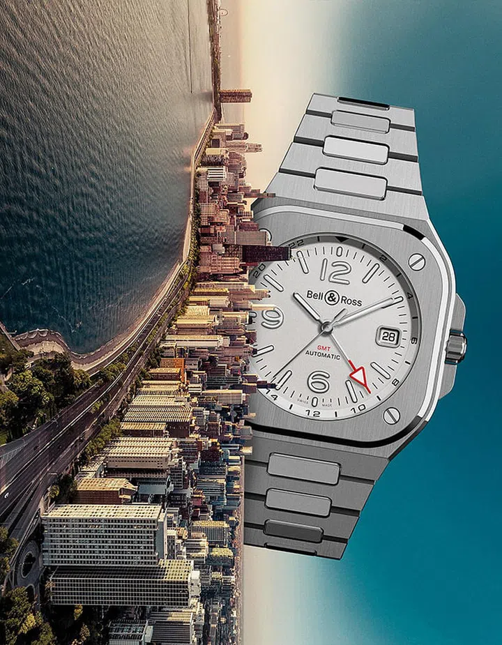 Following a black-dialled version, the Bell & Ross BR 05 GMT now comes in a palette on the other end of the spectrum. Housed in a 41mm steel case, the automatic BR 05 GMT White features a second time zone hand with a red tip, which points at the 24-hour scale on the flange. The ring divides the 24 hours into day and night with slightly different colours, so users know at a glance what time of the day it is back home.