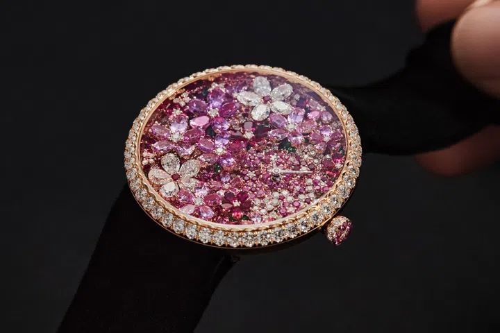 The diamond-set bezel and crown add further brilliance, while the caseback reveals additional engraved floral motifs — a hidden flourish that resonates with Dior’s couture storytelling. Inspired by Christian Dior’s lifelong passion for gardens and blooms, the watch embodies a joyful, dreamlike interpretation of nature.