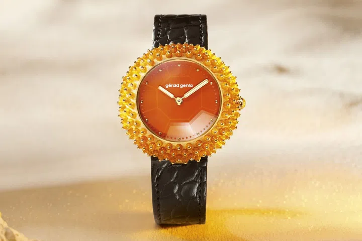 Gerald Genta’s design legacy takes on a vivid new expression with the Gentissima Oursin Fire Opal, the fourth chapter of the revived Oursin collection. Inspired by the sea urchin motif that captivated the maestro in 1994, this flamboyant edition features 137 individually screwed fire opal gems arranged around a 36.5mm yellow-gold 3N case. Formed in Mexico’s volcanic regions, each stone glows with complex hues of orange, red, and yellow, symbolising creativity, vitality and joy.