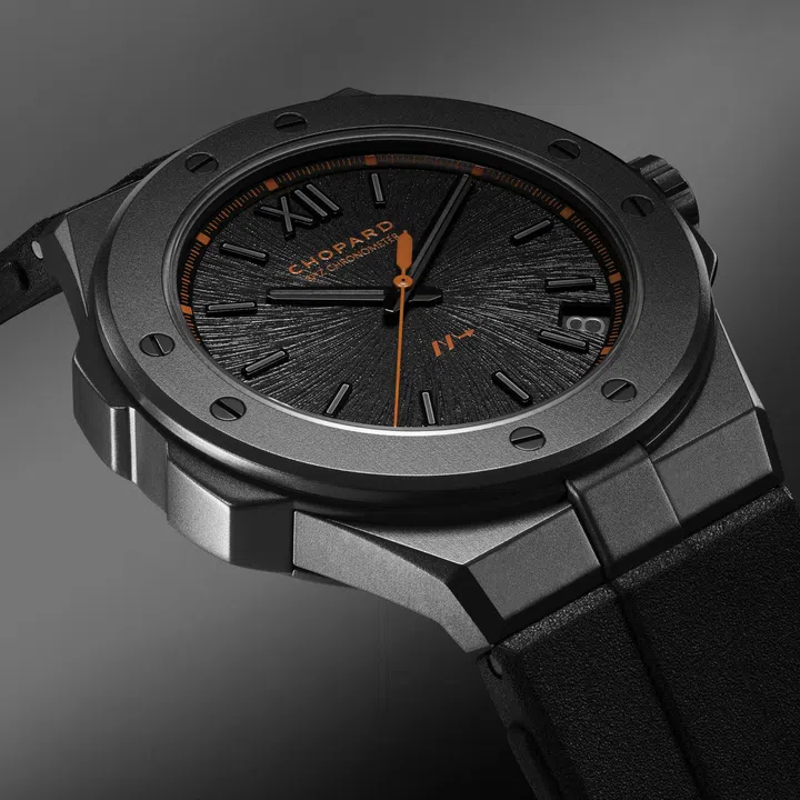 Inside beats the high-frequency Chopard 01.14-C calibre, running at an impressive 8Hz for superior chronometric stability. Silicon components in the escapement reduce friction and energy loss, enabling a 60-hour power reserve, while the dial — stamped with the collection’s eagle-eye motif — adopts a minimalist Pitch Black tone heightened by vivid orange accents. A rubber strap, introduced here for the first time in the high-frequency series, further enhances the watch’s sporty identity.