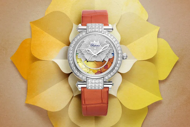 Chopard introduces a lyrical fusion of poetry and mechanics with the Imperiale Four Seasons, a complication that depicts the passage of the year through a rotating disc that completes a full revolution every 365 days. Crafted in textured mother-of-pearl marquetry, the disc transforms gradually with the seasons, while the upper dial reveals a delicate lotus motif sculpted in diamond-set ethical white gold — an emblematic signature of the Imperiale line.