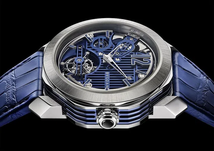 Last January, Bulgari launched its first Octo Roma Carillon Tourbillon, a minute repeater housed in a sporty 44mm DLC-coated titanium case. This year, it follows up with a new version in a platinum case, again with an openworked titanium caseband for optimal sound propagation.