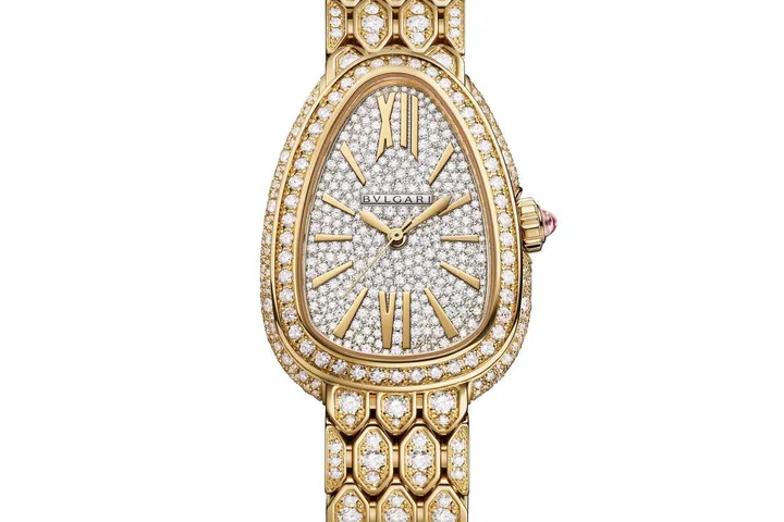Expected to be included in the future catalogue of in-house movements available to other LVMH Group maisons, the Lady Solotempo BVS100 makes its debut here in seven versions of the Serpenti Seduttori collection, known for its second-skin bracelet and hexagonal scales.
