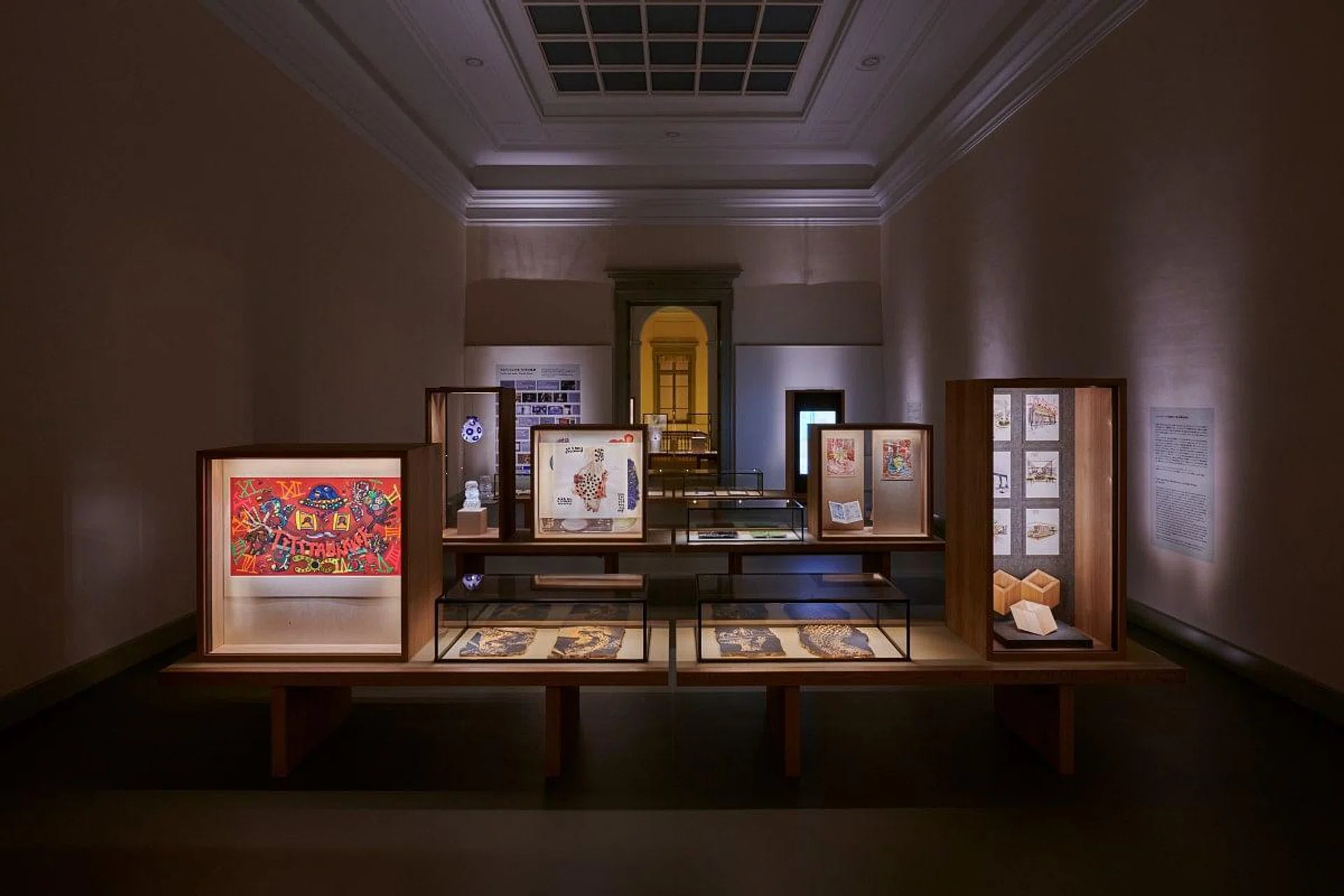 Designed by Studio Adrien Gardere, the exhibition’s scenography is a harmonious blend of traditional Japanese aesthetics and Cartier's timeless elegance. The design pays homage to the Hyokeikan’s western-style architecture of the late Meiji period, while echoing Cartier's love of Japanese art. Traditional materials are reimagined, with exhibits displayed in niches and on tables inspired by Tokonoma and Sukiya architecture. Japanese industrial scaffolding systems frame the artwork, symbolising the dynamic relationship between Fondation Cartier and Japanese artists.