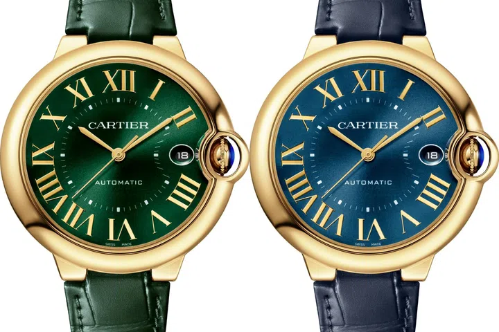 For a bolder impact, Cartier has also unveiled yellow gold Ballon Bleu models in 40mm, with radiant blue or green sunray-brushed dials and driven by the automatic Calibre 1847 MC. Their Roman numerals and hands are finished in yellow gold to echo the case, offering precious alternatives to the current steel options.