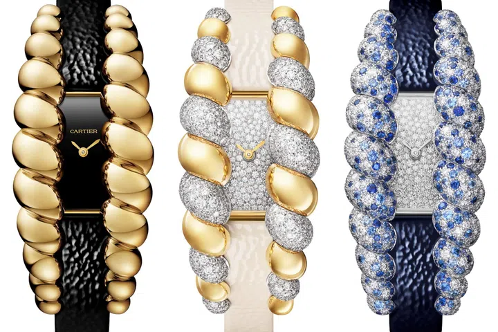 A Santos de Cartier in titanium, a larger Tank Louis Cartier, the hypnotic new Tressage, fresh Panthere and Ballon Bleu personalities — the maison continues to prove that timekeeping as art is as much defined by form as it is function.