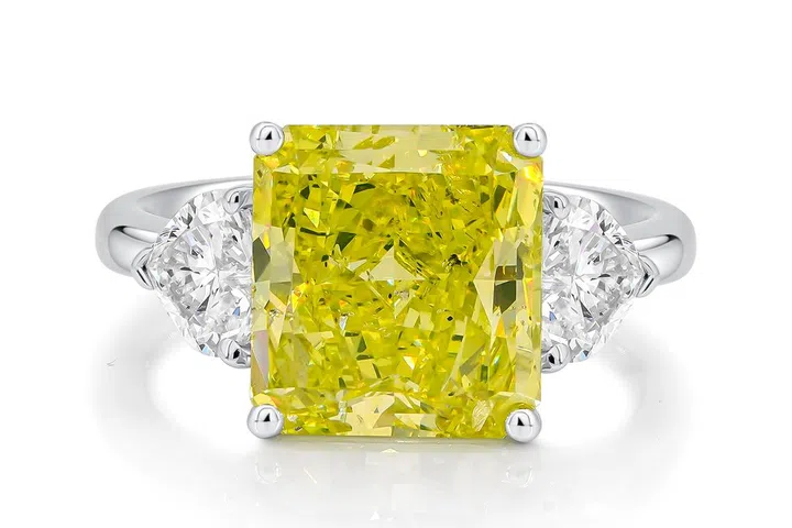 A yellow diamond in Radiant Cut takes centre stage on this ring (Photo: M&B Private Jewelers)