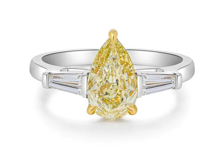 An outstanding yellow diamond ring in Pear Cut (Photo: M&B Private Jewelers)