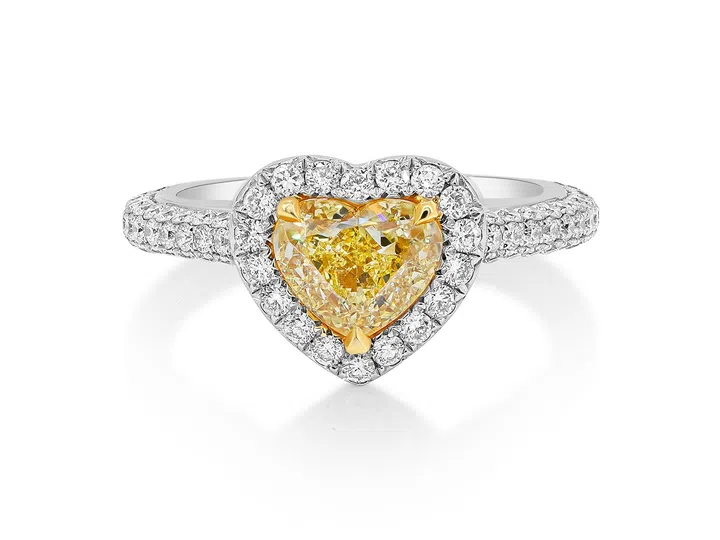 On this ring is a well-proportioned yellow diamond in Heart Cut (Photo: M&B Private Jewelers)