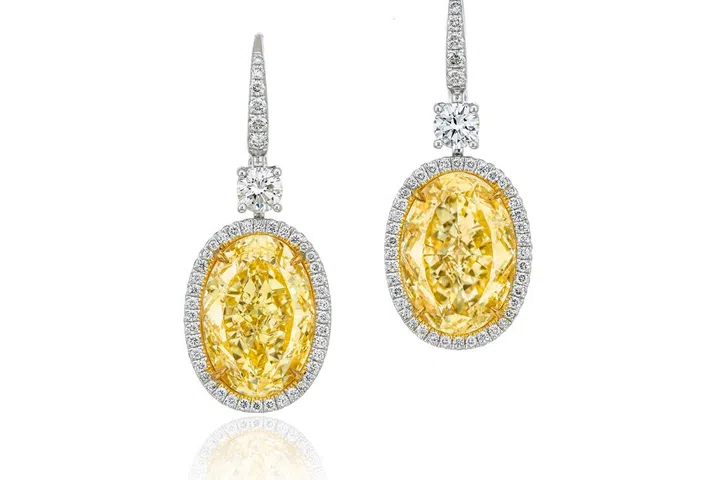 Yellow diamonds, in Oval Cut, on a pair of earrings (Photo: M&B Private Jewelers)