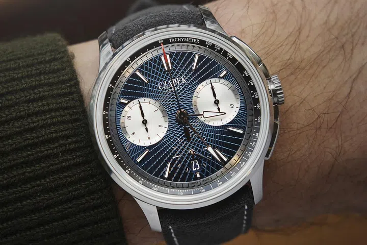 Czapek & Cie Faubourg de Cracovie Crossroads Chronograph in Deep Blue with a new guilloche pattern reminiscent of tyre threads