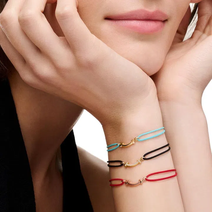 To contribute towards the Love For Our Oceans initiative, Tiffany & Co. has introduced a new line of T Smile by Tiffany cord bracelets. Crafted from REPREVE Our Ocean cords, a sustainable material made entirely from ocean-bound plastic bottles, the creations come in three choices: yellow gold with blue cord, rose gold and diamonds with black cord, and rose gold with red cord.