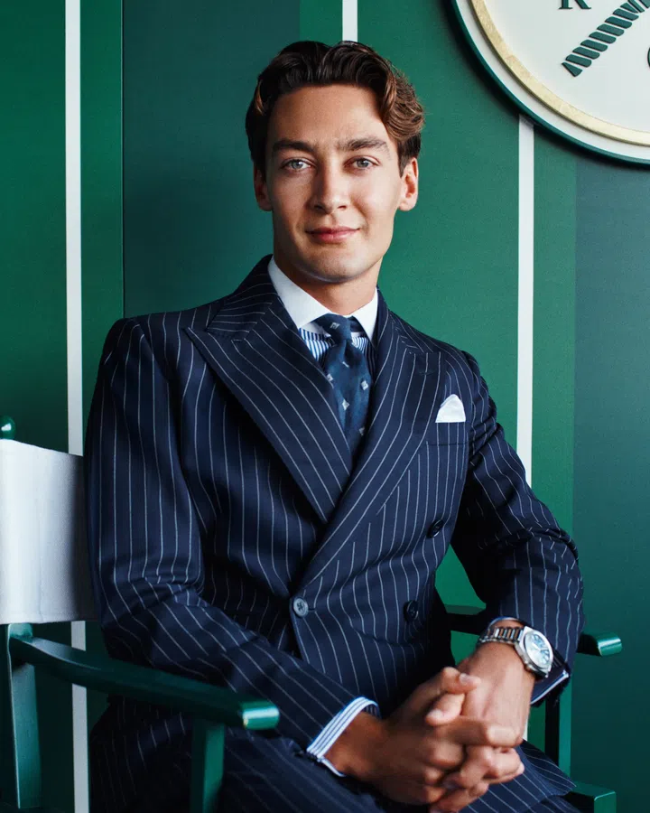 George Russell channelling a debonair Bond in Ralph Lauren at this year’s Wimbledon