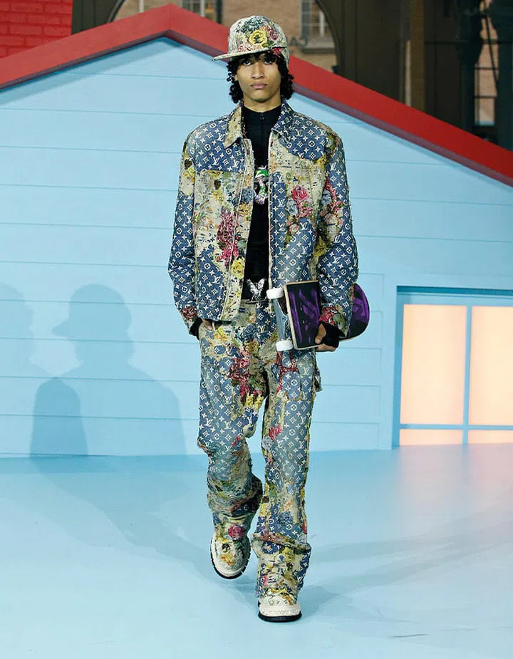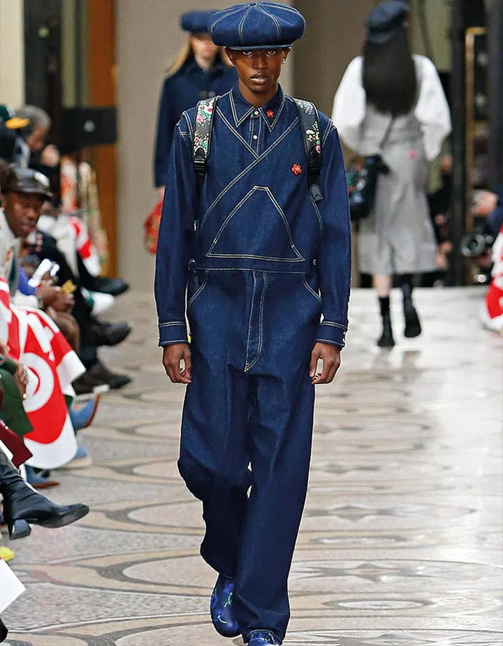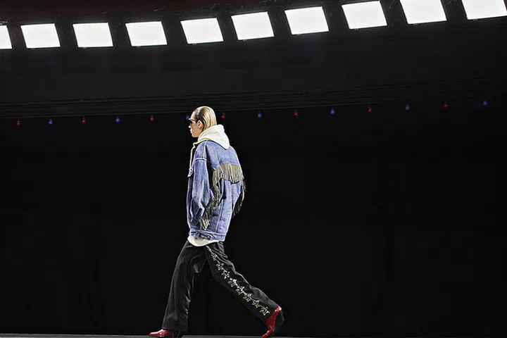 At Loewe, creative director Jonathan Anderson played with notions of reality. Menswear codes were twisted to create off-kilter takes on denim, including skirt-like wraps worn over coats and ripped jeans with flowy side panels.