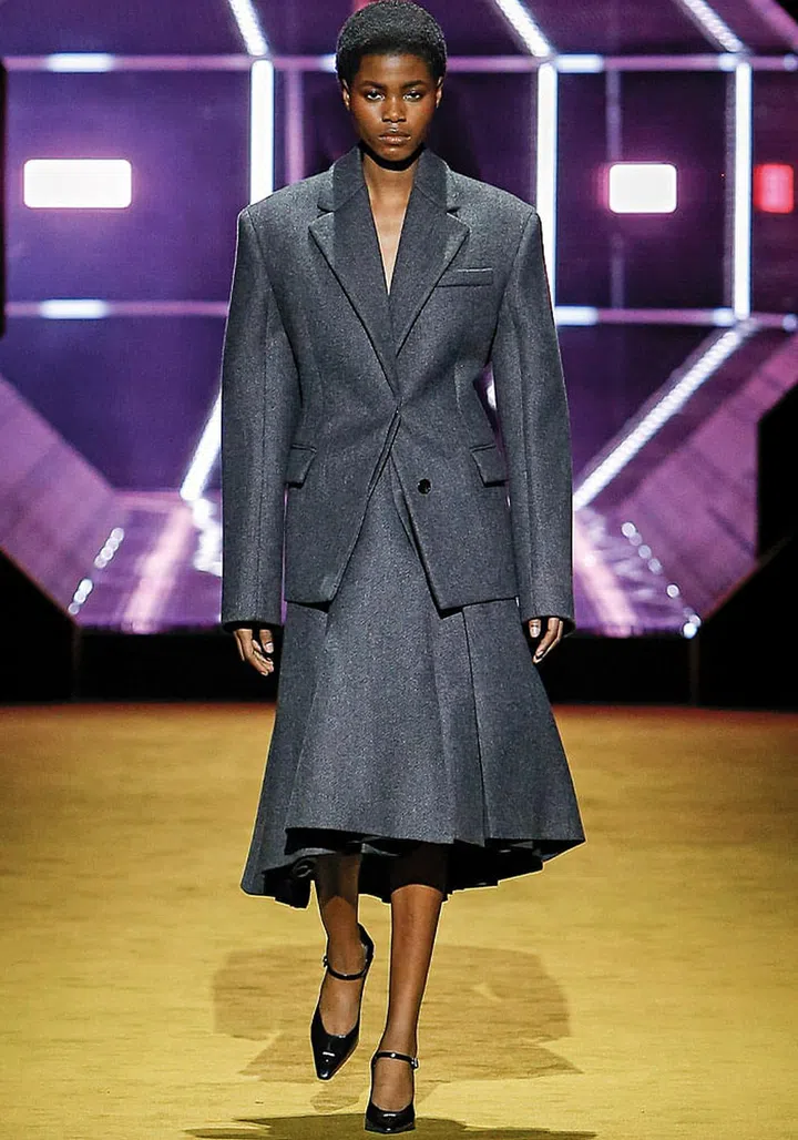 Bad news for those who spent most of the pandemic snacking: The waist is the season’s It zone. As if they had had enough of our collective lockdown loungewear, Prada co- designers Miuccia Prada and Raf Simons are championing elegance and tailoring. As the press notes declare, “the body is given emphasis, shoulders and waist delineated through traditional tailoring.”