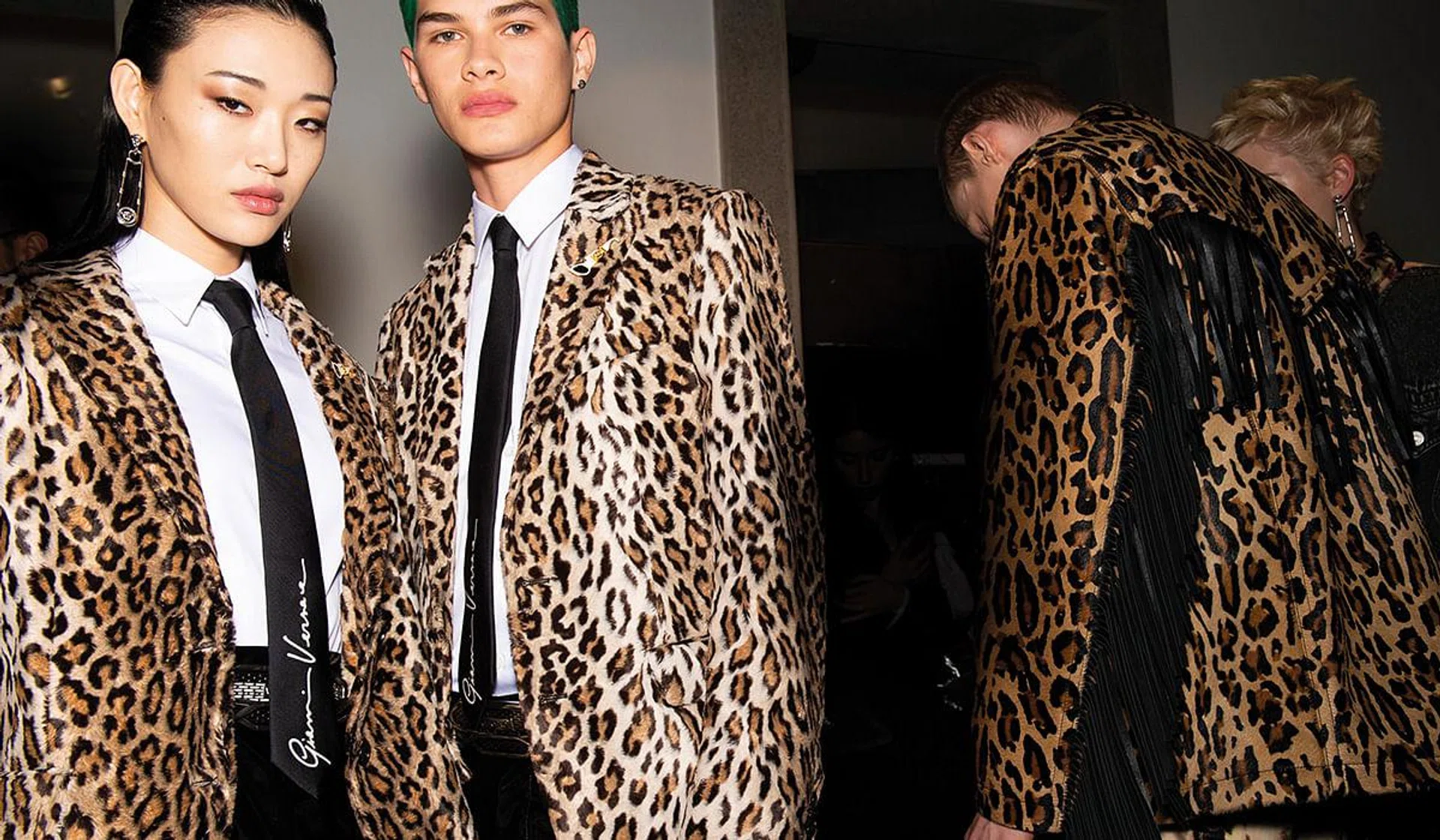 Our favourite examples of the trend? Tom Ford’s very cool take on evening formal wear, featuring shawl-collared jackets in brightly-hued, animal print jacquard paired with impeccable ivory tailored separates and shoes.