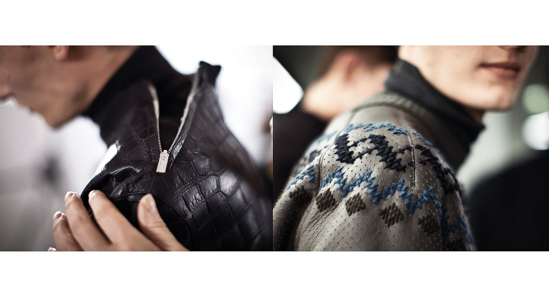 Lightly structured jackets, for instance, are paired with tailored track pants, while a dark pinstripe smartens up an otherwise casual blouson. Hermes’ signature ultra lightweight and ultra-luxurious “chiff on crocodile” is also used here to surprising effect as the choice of fabric for a sweatshirt. Whether it’s a plaid suit or a perforated sheepskin jacket with Fair Isle-style embroidery, the designs all share a certain comfy ease – which is, to us, the ultimate luxury.
