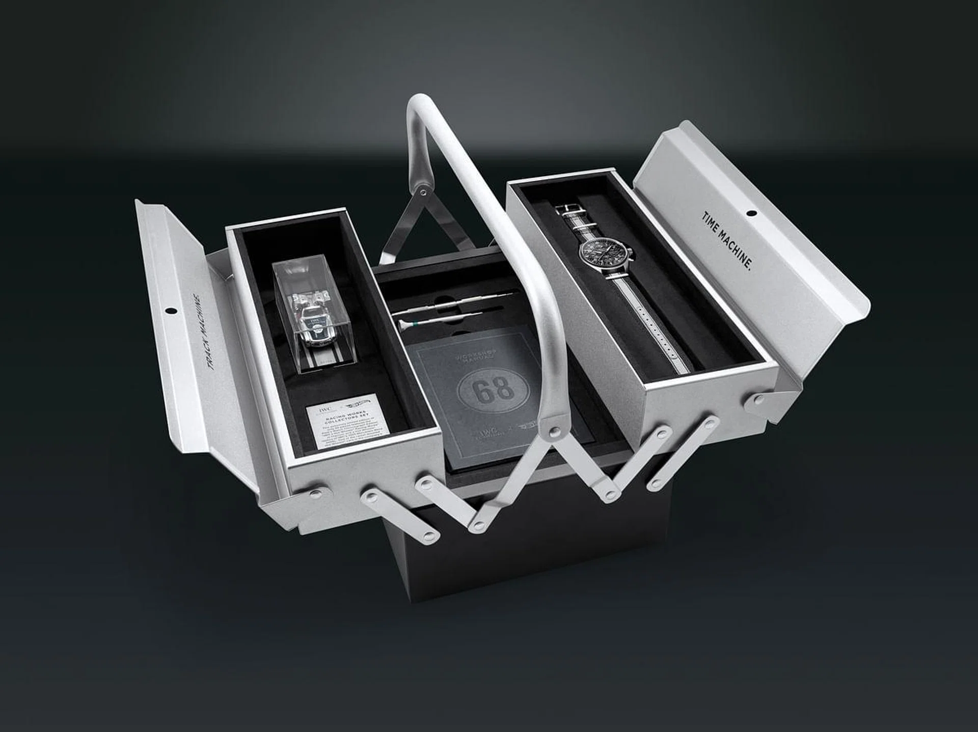 In a very cool and fortuitous spin, the number 68 marks both car and watch, with 1868 and 1968 being the founding years of IWC and Hot Wheels respectively. Speaking of numbers, each of the 50 sets will be numbered, and this figure is inscribed on a limitation plate found in the toolbox packaging, along with an instruction manual and a booklet about the project.
