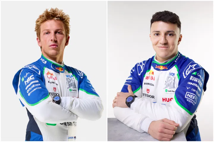 Visa Cash App Racing Bulls drivers Liam Lawson and Isack Hadjar wearing their Tudor watches