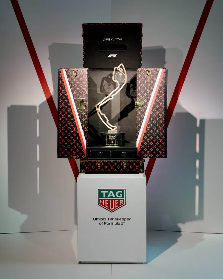If F1 is the pinnacle of speed, Louis Vuitton is the pinnacle of travel and presentation — so its 2025 trophy trunks feel right at home. The high-end Parisian brand is crafting bespoke trunks for each Grand Prix, reflecting the identity and colours of every host city. For Singapore, that means the trophy’s journey becomes a ritual of ceremony and savoir faire: hand-finished wood frames, monogram canvases, and colour cues that nod to Marina Bay’s neon nightscape.