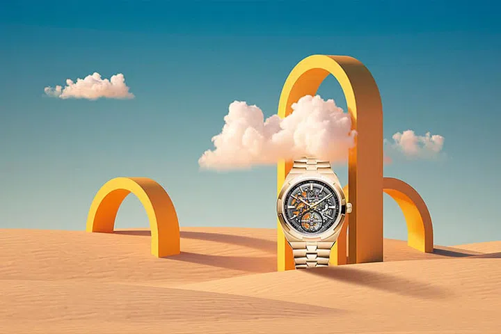 The Overseas Tourbillon Skeleton is the first Vacheron Constantin watch made entirely of titanium — including its case, crown, bezel and bracelet. Driven by the self-winding in-house Calibre 2160, the 42.5mm timepiece features a tourbillon with a cage inspired by the brand's signature Maltese cross.