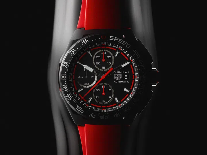 This 44mm red model is one of four colour choices for the TAG Heuer Formula 1 Chronograph